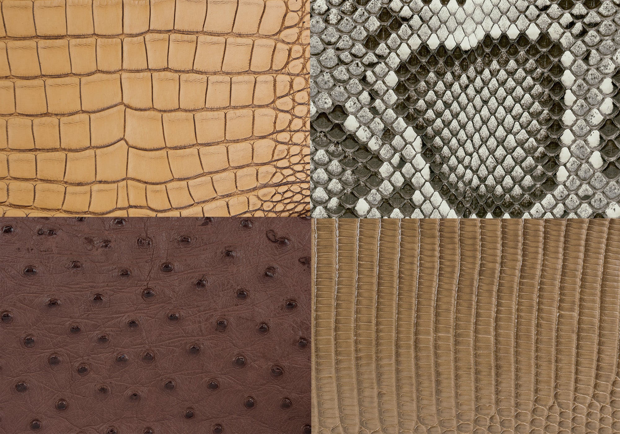 Made from full-grain French or Italian bovine leathers or from genuine exotic skins : alligator, ostrich, lizard & python