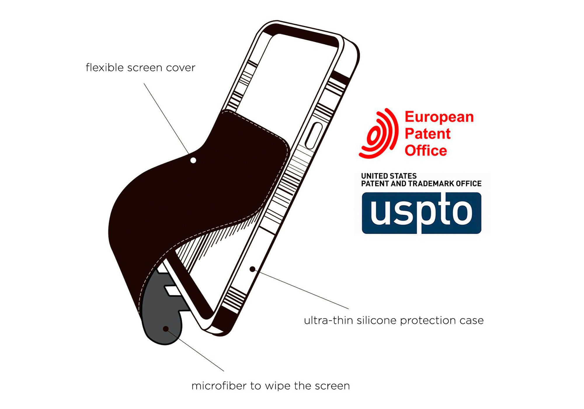 Alcantara inner lining + folding cover => you can clean your screen from dust & fingerprints