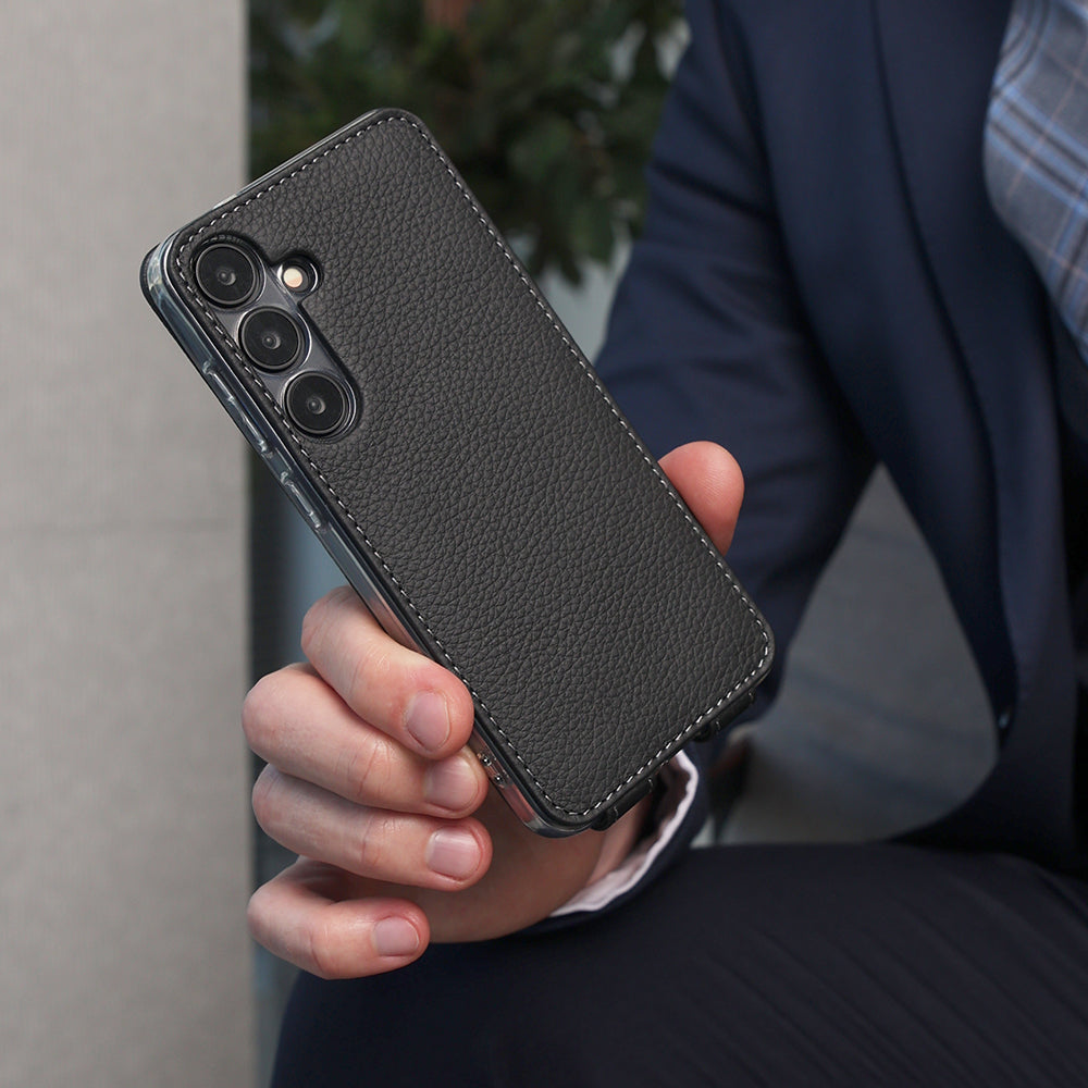 Ultra-thin premium leather covers with a slim silicone base and refined everyday protection.